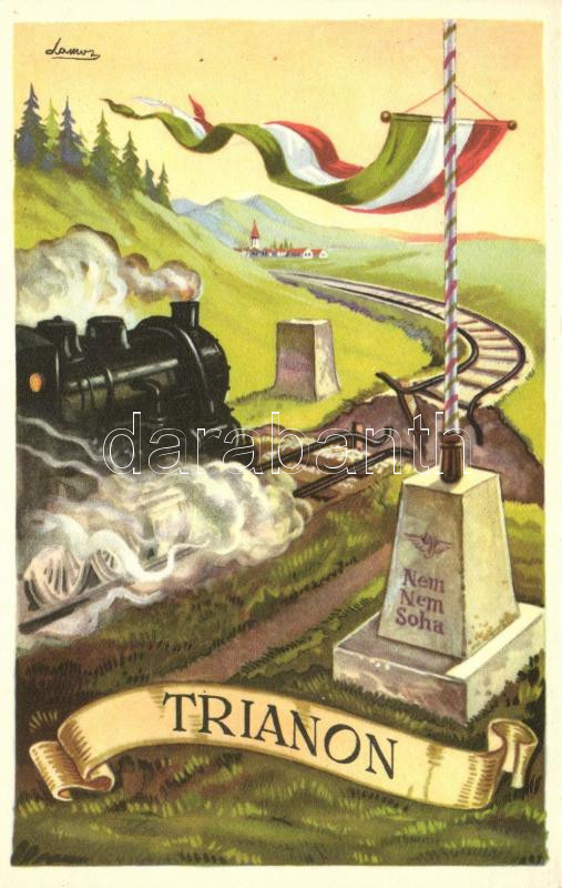 Nem nem soha; Trianon, gőzmozdony / Hungarian irredenta, flag, locomot... https://www.darabanth.com/de/227-Fernauktion/227.0/Ansichtskarten/Irredenta~600066/Nem-nem-soha-Trianon-gozmozdony-Hungarian-irredenta-flag-locomotive-s-Lamoss~II1009133