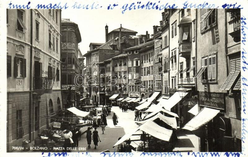 Bolzano, Bozen; Piazza delle Erbe / square, shops https://www.darabanth.com/de/227-Fernauktion/227.0/Ansichtskarten/Italien~600057/Bolzano-Bozen-Piazza-delle-Erbe-square-shops~II1008496