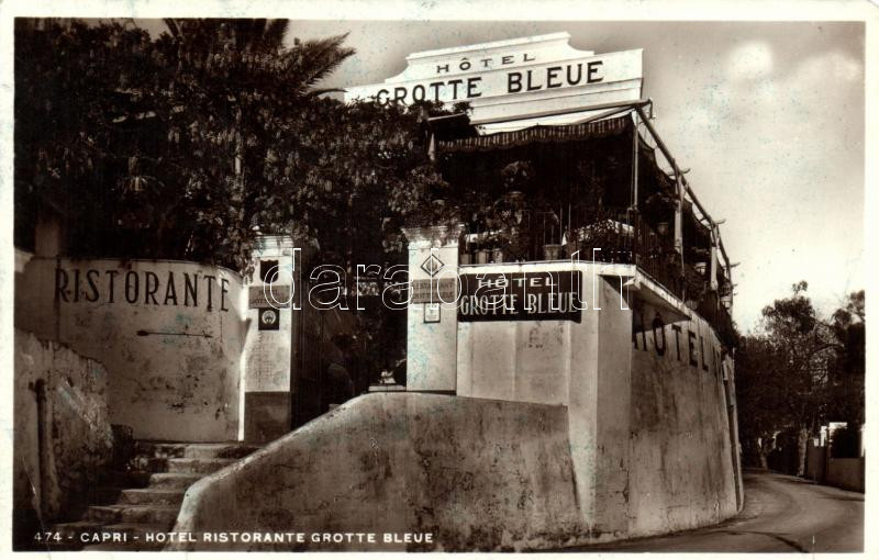 Capri, Hotel Ristorante Grotte Bleue / hotel restaurant (EB) https://www.darabanth.com/de/227-Fernauktion/227.0/Ansichtskarten/Italien~600057/Capri-Hotel-Ristorante-Grotte-Bleue-hotel-restaurant-EB~II1003491