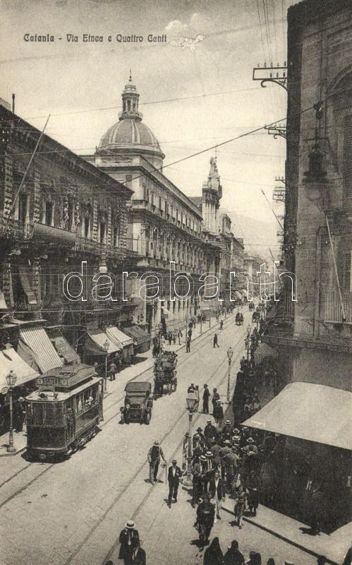 Catania, Via Etnea, Quattro Canti / street, tram, automobile (EK) https://www.darabanth.com/de/227-Fernauktion/227.0/Ansichtskarten/Italien~600057/Catania-Via-Etnea-Quattro-Canti-street-tram-automobile-EK~II1012315