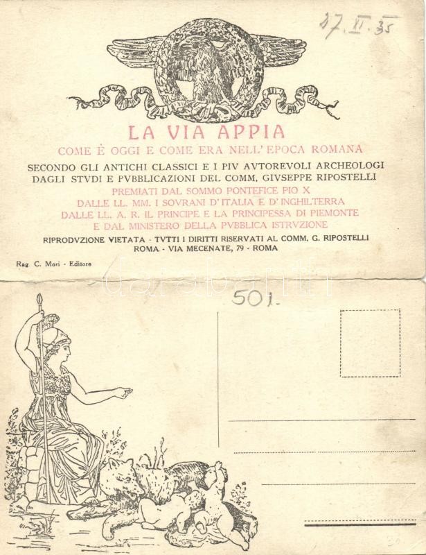 Beschreibung: Rome, Roma; Via Appia, Basilica de S. Sebastiano, Martirio di S. Tarcisio / street, basilica, martyrs, folding card (bent til broken)