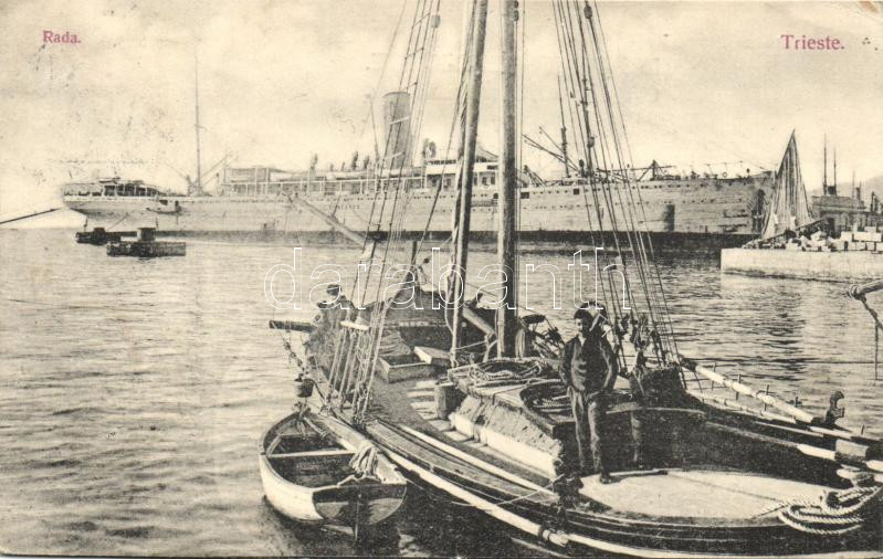 Trieste, Rada / port, steamship, sailing ship (EK) https://www.darabanth.com/de/227-Fernauktion/227.0/Ansichtskarten/Italien~600057/Trieste-Rada-port-steamship-sailing-ship-EK~II1008399