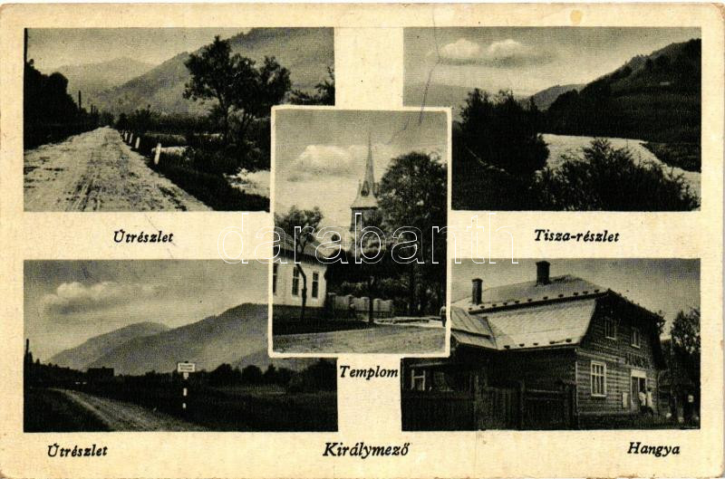 Királymező, Tisza, templom, Hangya / street, church, river https://www.darabanth.com/de/227-Fernauktion/227.0/Ansichtskarten/Karpatenukraine~400017/Kiralymezo-Tisza-templom-Hangya-street-church-river~II1006194