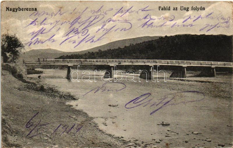 Nagyberezna, Fa híd az Ung folyón / bridge (ázott / wet damage) https://www.darabanth.com/de/227-Fernauktion/227.0/Ansichtskarten/Karpatenukraine~400017/Nagyberezna-Fa-hid-az-Ung-folyon-bridge-azott-wet-damage~II1012474
