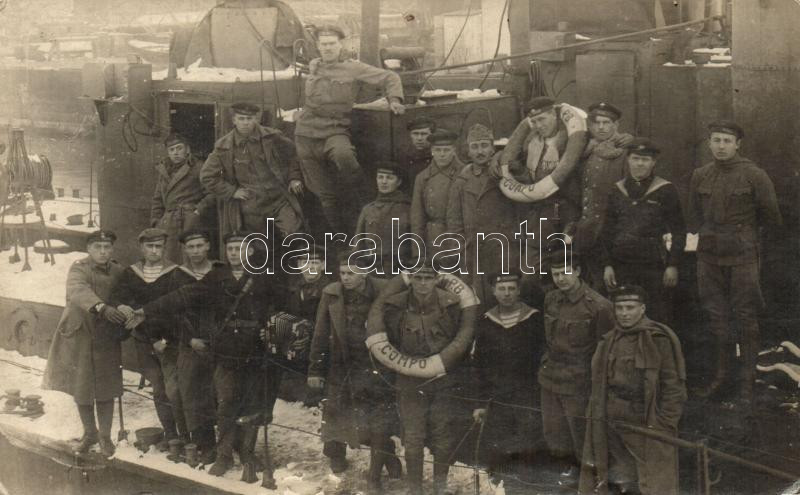 Beschreibung: 1919 február 3. Patrouillenboot Compó, Wels osztályú őrnaszád a Dunán / Austro-Hungarian navy, Kriegsmarine, patrol ship 'Compo' group photo