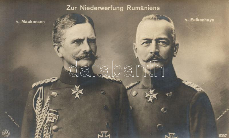 'Zur Niederwerfung Rumaniens' August von Mackensen, Erich von Falkenha... https://www.darabanth.com/de/227-Fernauktion/227.0/Ansichtskarten/Militaria~600073/Zur-Niederwerfung-Rumaniens-August-von-Mackensen-Erich-von-Falkenhayn~II1006262