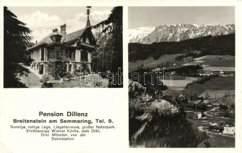 Breitenstein am Semmering, Pension Dillenz / hotel (EK) https://www.darabanth.com/de/227-Fernauktion/227.0/Ansichtskarten/Osterreich~600053/Breitenstein-am-Semmering-Pension-Dillenz-hotel-EK~II1005120