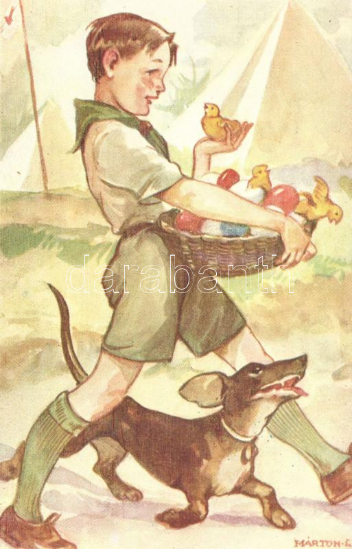 Scout, Easter, dog, 'Cserkészlapok Kiadóvállalata' s: Márton L. https://www.darabanth.com/de/227-Fernauktion/227.0/Ansichtskarten/Pfadfinder~600044/Scout-Easter-dog-Cserkeszlapok-Kiadovallalata-s-Marton-L~II1004420