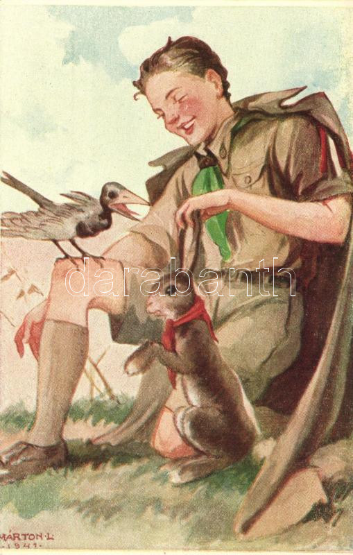 Scout, rabbit, 'Cserkészlapok Kiadóvállalata' s: Márton L. https://www.darabanth.com/de/227-Fernauktion/227.0/Ansichtskarten/Pfadfinder~600044/Scout-rabbit-Cserkeszlapok-Kiadovallalata-s-Marton-L~II1004429