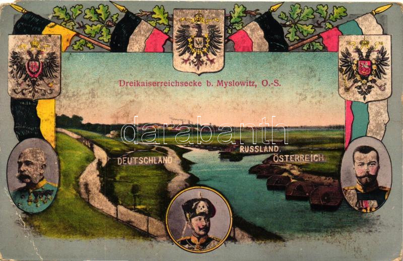 Myslowice, Myslowitz; German-Austro-Russian border, Franz Joseph, Wilh... https://www.darabanth.com/de/227-Fernauktion/227.0/Ansichtskarten/Polen~600094/Myslowice-Myslowitz-German-Austro-Russian-border-Franz-Joseph-Wilhelm-II-Nicholas-II-of-Russia-~II1012233