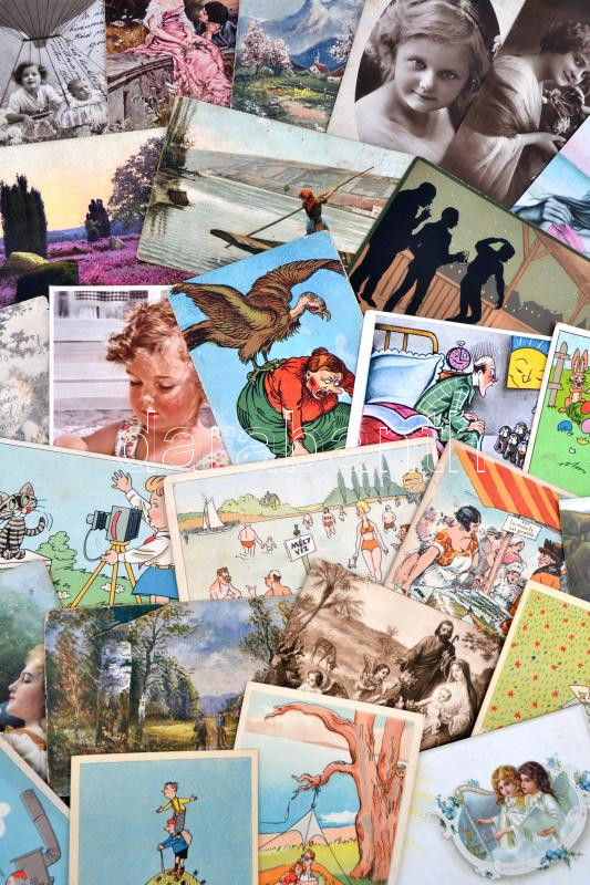 Kb. 1280 db főleg RÉGI motívumlap nagy dobozban; párok, hölgyek, művész, vallás / Approx. 1280 mostly old motive cards in a big box; couples, lady, art, religion