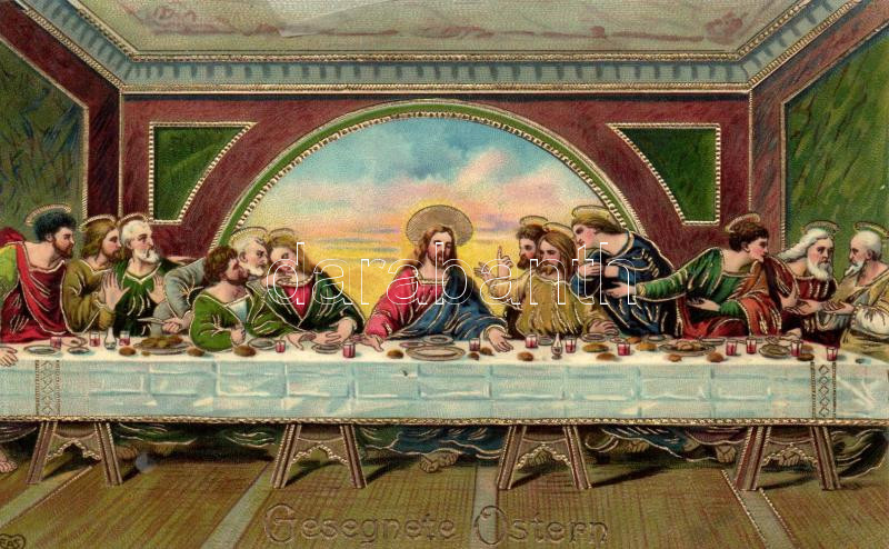 Easter, Last Supper, Jesus Christ, golden decoration litho https://www.darabanth.com/de/227-Fernauktion/227.0/Ansichtskarten/Religion~600109/Easter-Last-Supper-Jesus-Christ-golden-decoration-litho~II1007018