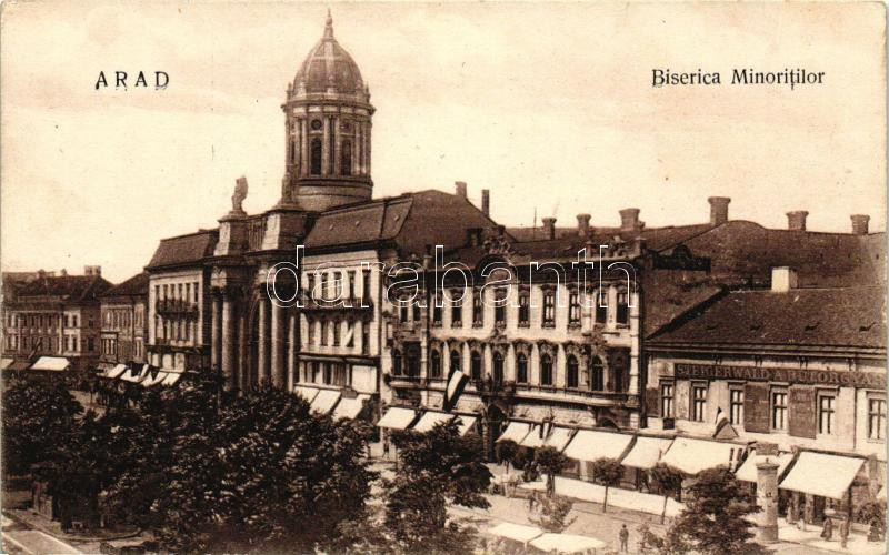 Arad, Biserica Minoritilor, Steigerwald A. bútorgyáros üzlete / church... https://www.darabanth.com/de/227-Fernauktion/227.0/Ansichtskarten/Siebenburgen~400007/Arad-Biserica-Minoritilor-Steigerwald-A-butorgyaros-uzlete-church-shops~II1011601