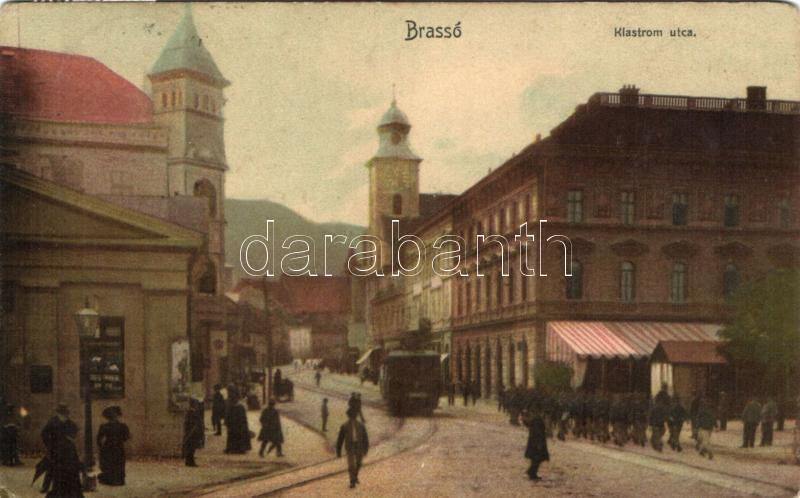 Brassó, Kronstadt; Klastrom utca, villamos, üzletek, Zeidner H. kiadás... https://www.darabanth.com/de/227-Fernauktion/227.0/Ansichtskarten/Siebenburgen~400007/Brasso-Kronstadt-Klastrom-utca-villamos-uzletek-Zeidner-H-kiadasa-street-tram-shops-fl~II1003460