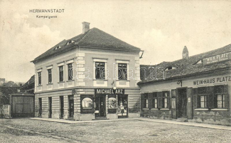 Nagyszeben, Michael Arz üzlete, Kempelgasse, Wein-Haus Platz / shop, s... https://www.darabanth.com/de/227-Fernauktion/227.0/Ansichtskarten/Siebenburgen~400007/Nagyszeben-Michael-Arz-uzlete-Kempelgasse-Wein-Haus-Platz-shop-street-EK~II1010287