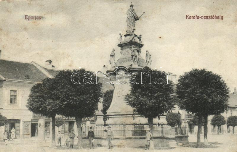 Eperjes, Karaffa vesztőhely, Bútor Nagyáruház, üzletek / monument, sho... https://www.darabanth.com/de/227-Fernauktion/227.0/Ansichtskarten/Slowakei~400008/Eperjes-Karaffa-vesztohely-Butor-Nagyaruhaz-uzletek-monument-shops-fa~II984102