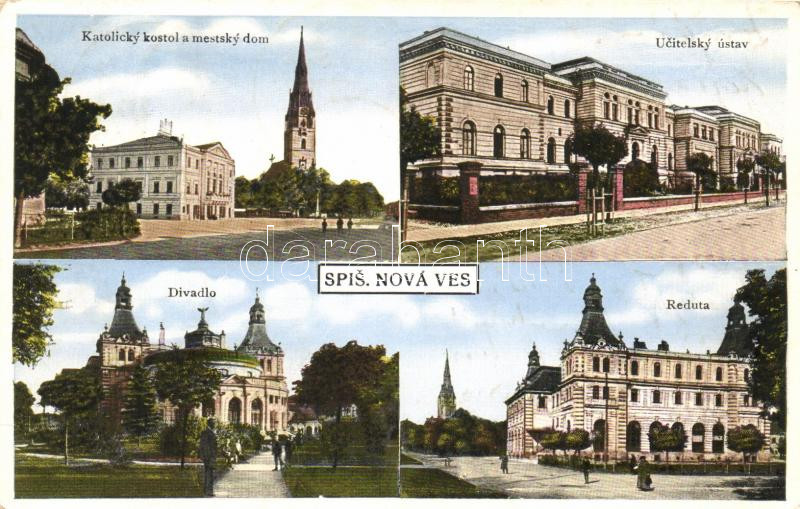 Igló, Katolikus templom, Városháza, színház, iskola, kaszinó / church, town hall, theatre, school, casino (EK)
