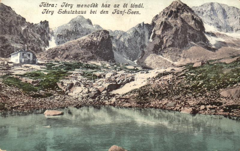 Tátra, Téry menedékház, Öt-tó, kiadja Cattarino S. / rest house, lake https://www.darabanth.com/de/227-Fernauktion/227.0/Ansichtskarten/Slowakei~400008/Tatra-Tery-menedekhaz-Ot-to-kiadja-Cattarino-S-rest-house-lake~II1011924