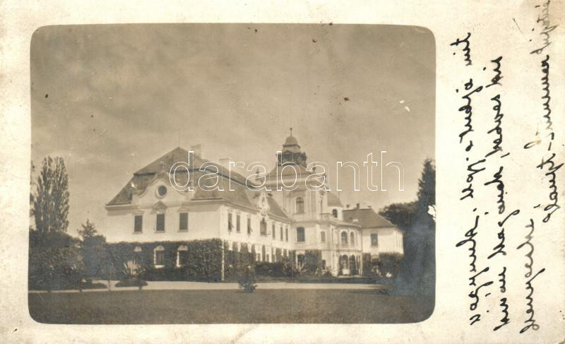 Beschreibung: Tőkésújfalu, Haupt-Stummer Lipót kastélya, Haupt-Stummer Lipótné által megírt lap / castle, signature the owner, photo