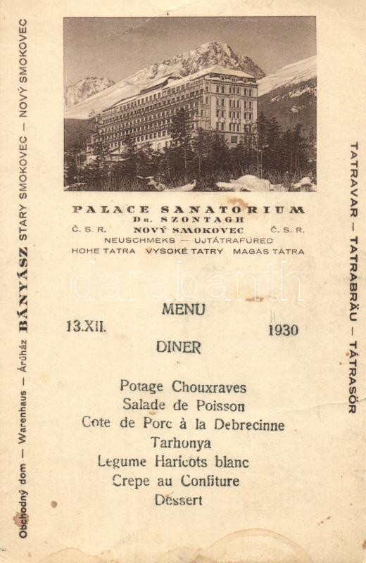 Újtátrafüred, Dr. Szontagh Palota szanatórium, reklám / sanatorium adv... https://www.darabanth.com/de/227-Fernauktion/227.0/Ansichtskarten/Slowakei~400008/Ujtatrafured-Dr-Szontagh-Palota-szanatorium-reklam-sanatorium-advertisement-fa~II1003334
