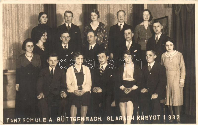 1932 Tanzschule, a. Büttgenbach, Glabach Rheydt / group photo of the d... https://www.darabanth.com/de/227-Fernauktion/227.0/Ansichtskarten/Studentica~600099/1932-Tanzschule-a-Buttgenbach-Glabach-Rheydt-group-photo-of-the-dance-school-EK~II1007504