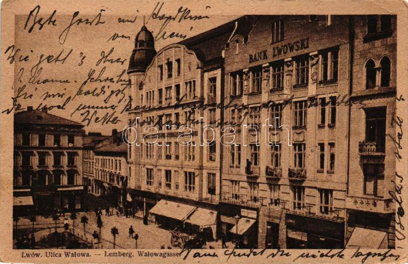 Lviv, Lwów, Lemberg; Walowagasse / street, bank (EK) https://www.darabanth.com/de/227-Fernauktion/227.0/Ansichtskarten/Ukraine~600037/Lviv-Lwow-Lemberg-Walowagasse-street-bank-EK~II1012218