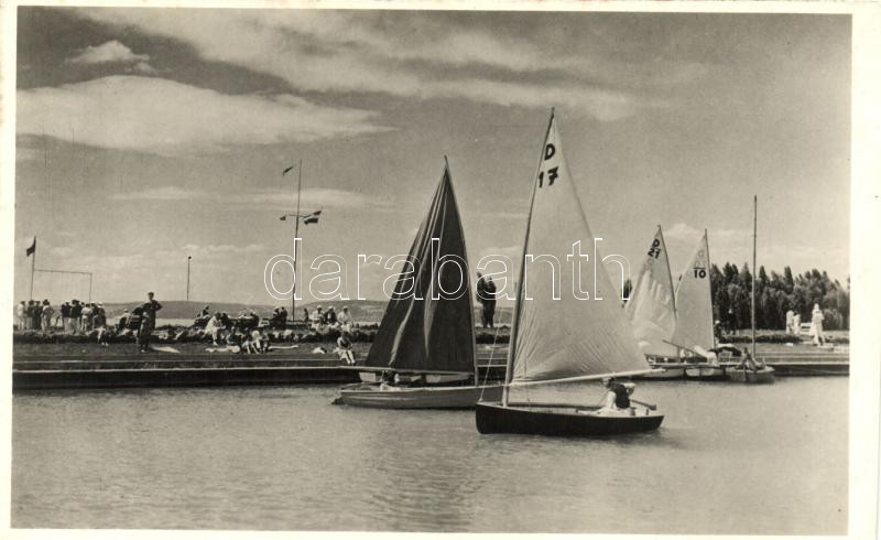 Beschreibung: Balatonkenese, fővárosi üdülőhely, Székesfővárosi Alkalmazottak Segítőlapja tulajdona, gyakorló vitorlások