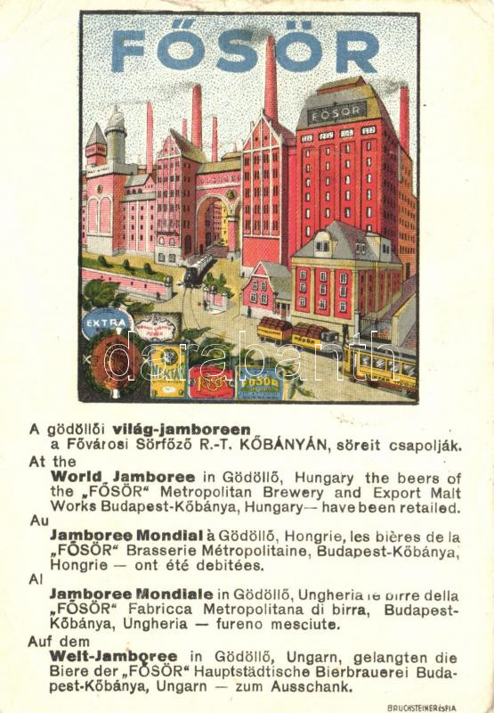 Budapest X. Kőbánya, Fősör Sörfőző Rt.; Gödöllői világ-jamboree sörcsa... https://www.darabanth.com/de/227-Fernauktion/227.0/Ansichtskarten/Ungarn~400006/Budapest-X-Kobanya-Fosor-Sorfozo-Rt-Godolloi-vilag-jamboree-sorcsapoloja-So-Stpl-~II1009299