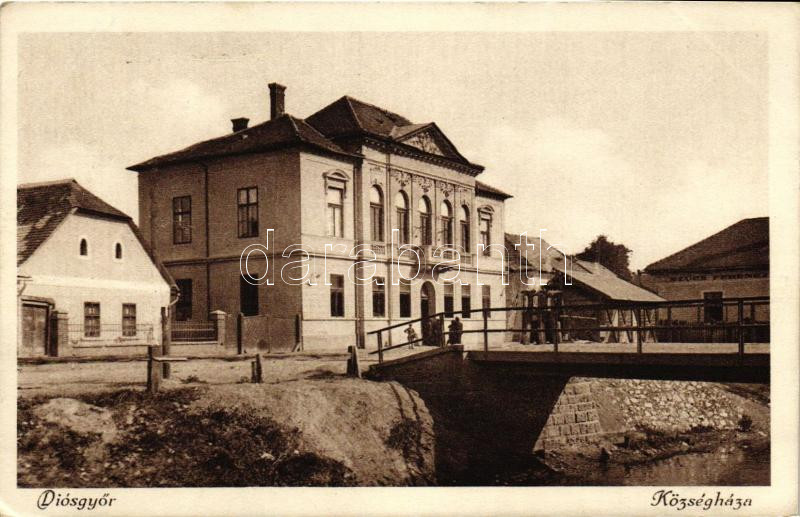 Diósgyőr, Községháza, híd, Szűcs Ferencz üzlete (EK) https://www.darabanth.com/de/227-Fernauktion/227.0/Ansichtskarten/Ungarn~400006/Diosgyor-Kozseghaza-hid-Szucs-Ferencz-uzlete-EK~II1012519