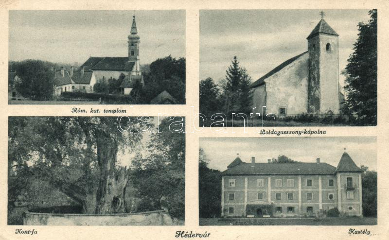 Hédervár, Római katolikus templom, Boldogasszony kápolna, Kont fa, kas... https://www.darabanth.com/de/227-Fernauktion/227.0/Ansichtskarten/Ungarn~400006/Hedervar-Romai-katolikus-templom-Boldogasszony-kapolna-Kont-fa-kastely-azott-sarok-wet-~II1008926