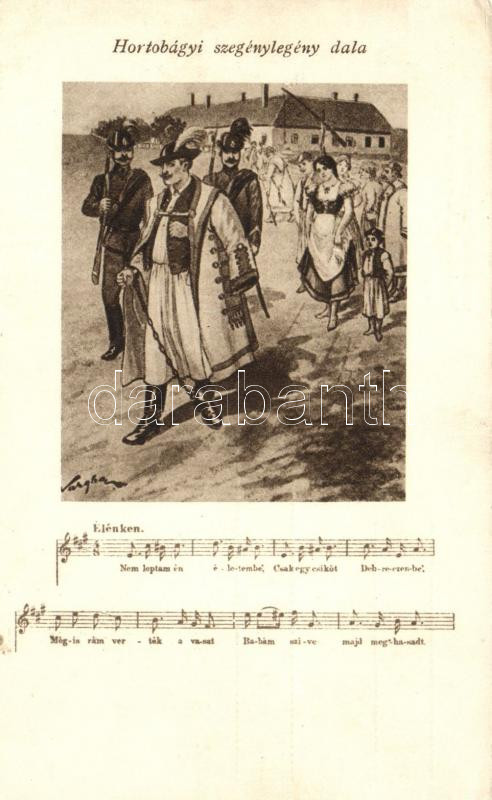 Hortobágy, szegénylegény dala, kotta (EK) https://www.darabanth.com/de/227-Fernauktion/227.0/Ansichtskarten/Ungarn~400006/Hortobagy-szegenylegeny-dala-kotta-EK~II1003350