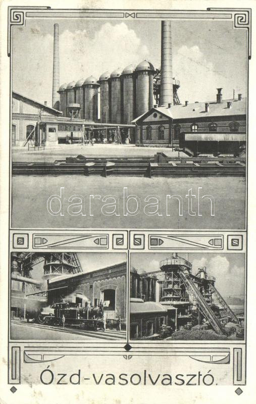 Ózd, Vasolvasztó, gőzmozdony, Art Nouveau https://www.darabanth.com/de/227-Fernauktion/227.0/Ansichtskarten/Ungarn~400006/Ozd-Vasolvaszto-gozmozdony-Art-Nouveau~II1008919