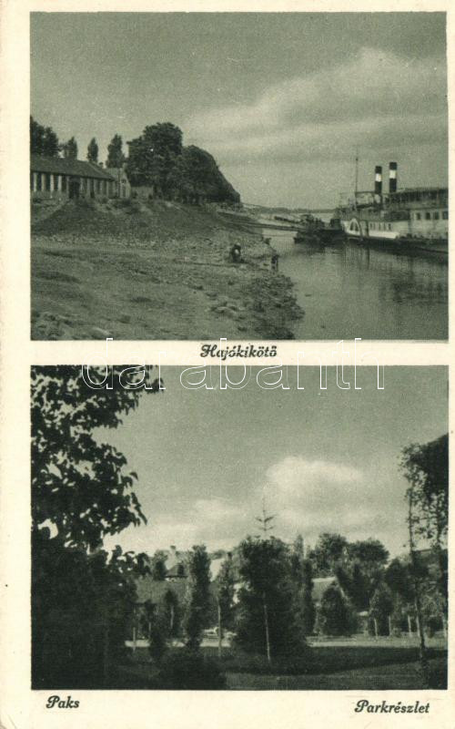 Paks, hajókikötő, park (ázott / wet damage) https://www.darabanth.com/de/227-Fernauktion/227.0/Ansichtskarten/Ungarn~400006/Paks-hajokikoto-park-azott-wet-damage~II1012276