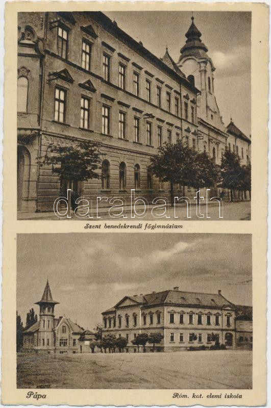 Pápa, Szent Benedek rendi főgimnázium, Római katolikus elemi iskola (E... https://www.darabanth.com/de/227-Fernauktion/227.0/Ansichtskarten/Ungarn~400006/Papa-Szent-Benedek-rendi-fogimnazium-Romai-katolikus-elemi-iskola-EK~II1009667