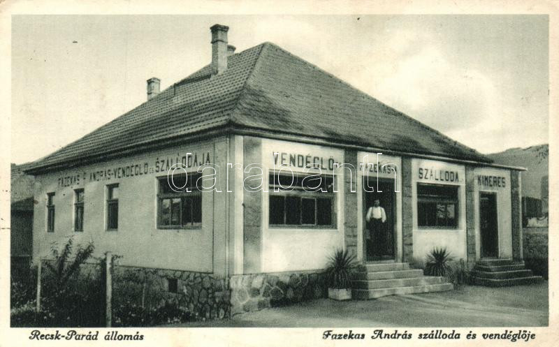 Beschreibung: Recsk-Parád állomás, Fazekas András szálloda vendéglője és nyaralóhelyisége