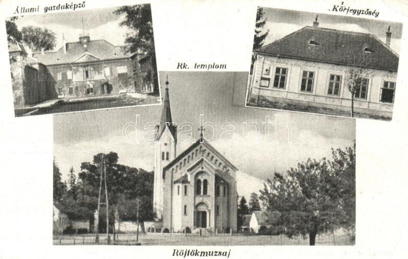 Röjtökmuzsaj, Állami gazdaképző, Római katolikus templom, körjegyzőség... https://www.darabanth.com/de/227-Fernauktion/227.0/Ansichtskarten/Ungarn~400006/Rojtokmuzsaj-Allami-gazdakepzo-Romai-katolikus-templom-korjegyzoseg-EK~II1008933