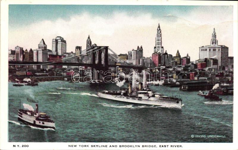 New York, Skyline, Brooklyn Bridge, East River, steamship (fa) https://www.darabanth.com/de/227-Fernauktion/227.0/Ansichtskarten/Vereinigte-Staaten-von-Amerika~600046/New-York-Skyline-Brooklyn-Bridge-East-River-steamship-fa~II1004902