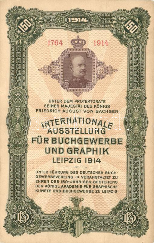 1914 Internationale Ausstellung für Buchgewerbe und Graphik, Leipzig; Friedrich August von Sachsen / International exposition of book printing and graphic arts (small tear)