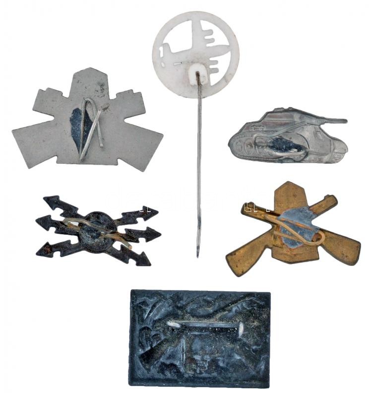 6db klf katonai állomány jelvény, közte harckocsizó, rádiós T:2,2- https://www.darabanth.com/de/227-Fernauktion/227.0/Numismatik/Militaria~600016/6db-klf-katonai-allomany-jelveny-kozte-harckocsizo-radios-T2-2-~II1012349