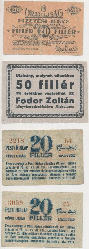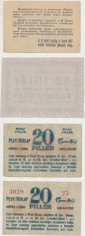 ~1919-1920. 20f "Pesti Hírlap" (2x) + 20f "8 Órai Újság" + 50f "Fodor ... https://www.darabanth.com/de/227-Fernauktion/227.0/Numismatik/Notgelden~600007/7E1919-1920-20f-Pesti-Hirlap-2x-plus-20f-8-Orai-Ujsag-plus-50f-Fodor-Zoltan-Konyvkereskedes~II1009917