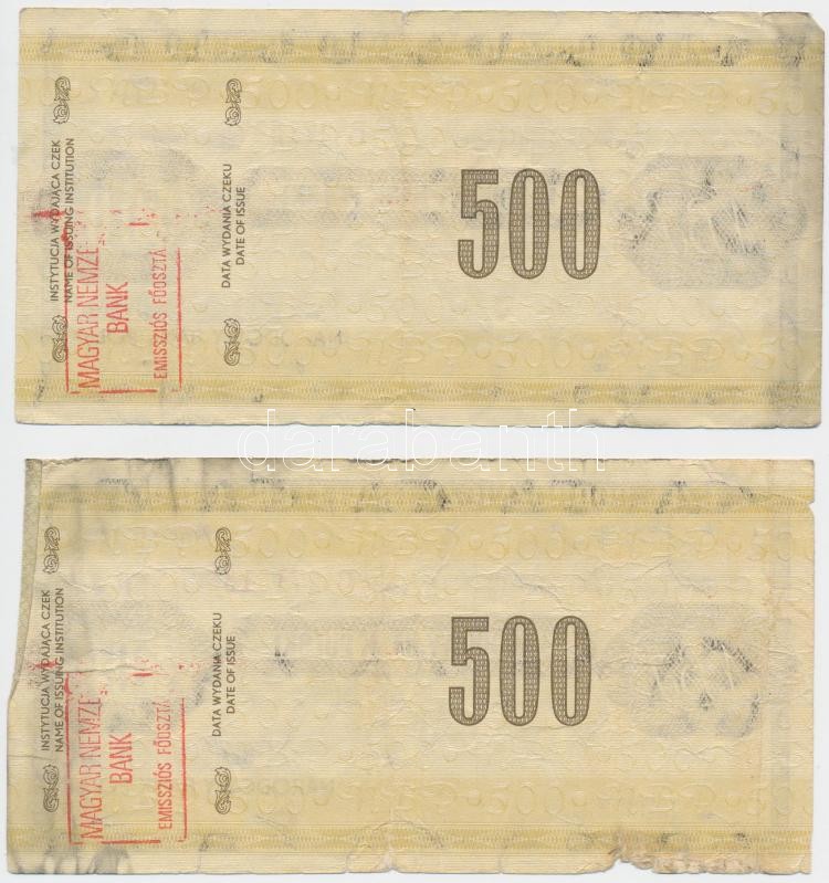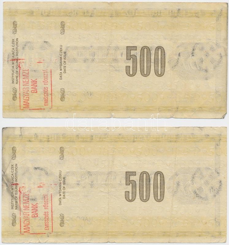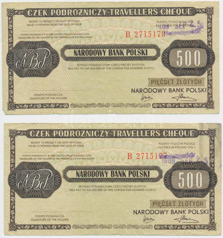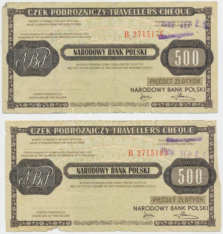 Lengyelország DN "Lengyel Nemzeti Bank" 500Zl (4x) felülbélyegzett utazási csekkek, három sorszámkövető T:III
