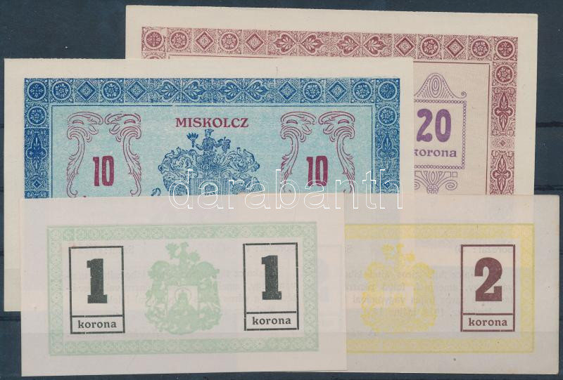 Beschreibung: Miskolc 1919. május 14. 1K + 2K + 10K + 20K városi szükségpénz T:I