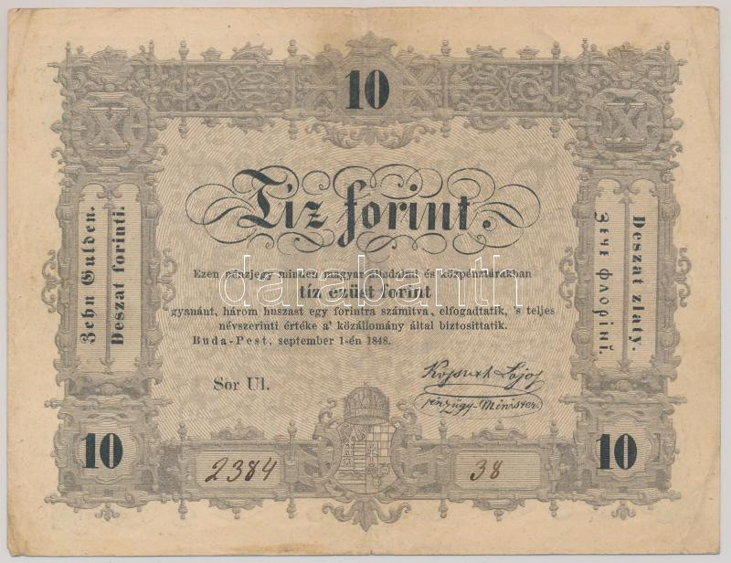Beschreibung: 1848. 10Ft "Kossuth bankó" T:III