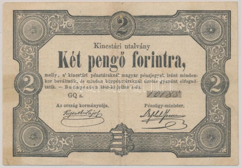1849. 2Ft "Kincstári utalvány" T:III https://www.darabanth.com/de/227-Fernauktion/227.0/Numismatik/Ungarische-Banknoten~600008/1849-2Ft-Kincstari-utalvany-TIII~II1008444