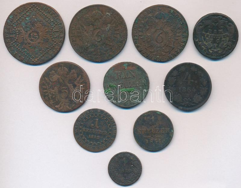1762-1864. 8db-os krajcár tétel, közte magyar és osztrák verdejelűek i... https://www.darabanth.com/de/227-Fernauktion/227.0/Numismatik/Ungarische-Munzen~600009/1762-1864-8db-os-krajcar-tetel-kozte-magyar-es-osztrak-verdejeluek-is-T2-3-3-~II1011584