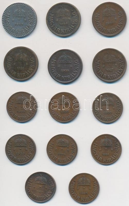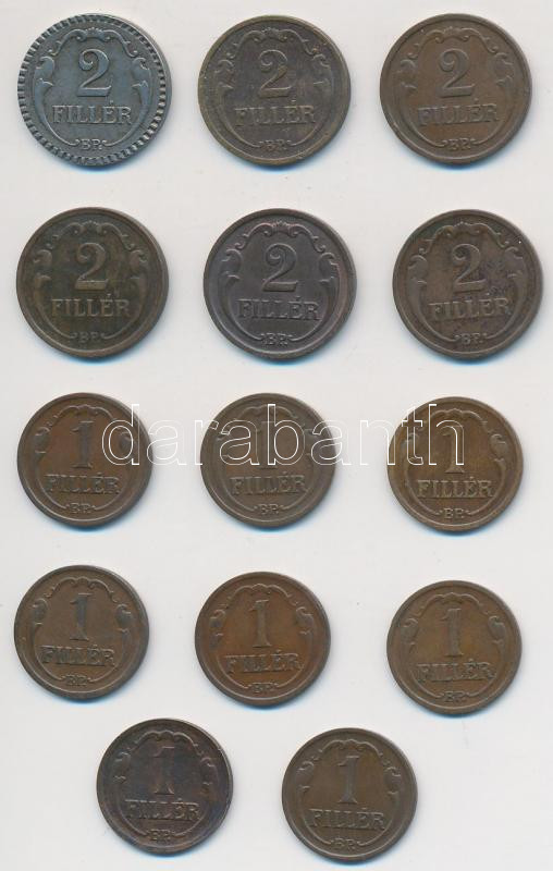 1926-1939. 1f Br (8xklf) + 1926-1940. 2f Br/Fe (6xklf) T:vegyes https://www.darabanth.com/de/227-Fernauktion/227.0/Numismatik/Ungarische-Munzen~600009/1926-1939-1f-Br-8xklf-plus-1926-1940-2f-BrFe-6xklf-Tvegyes~II1003742