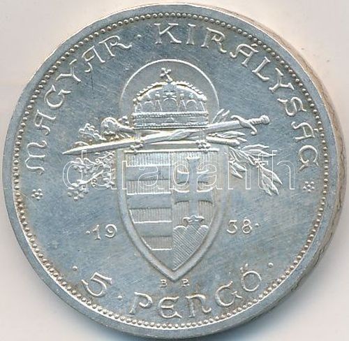 Adamo P8.1 https://www.darabanth.com/de/227-Fernauktion/227.0/Numismatik/Ungarische-Munzen~600009/1938-5P-Ag-Szent-Istvan-T2-3Cbr3EAdamo-P81~II1010104
