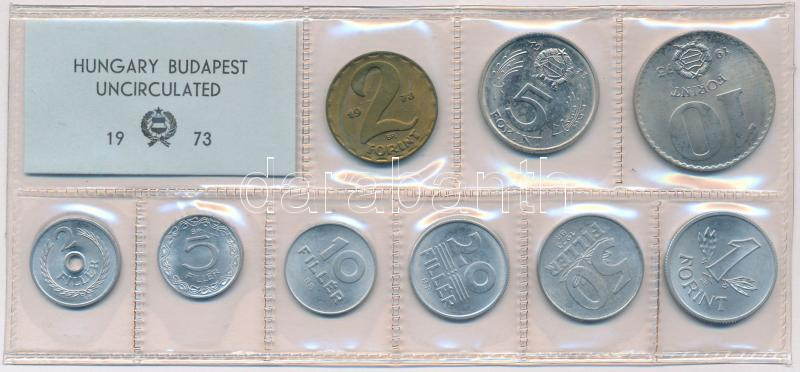 1973. 2f-10Ft 9db klf érmés forgalmi sor fólia tokban T:1 https://www.darabanth.com/de/227-Fernauktion/227.0/Numismatik/Ungarische-Munzen~600009/1973-2f-10Ft-9db-klf-ermes-forgalmi-sor-folia-tokban-T1~II1012648