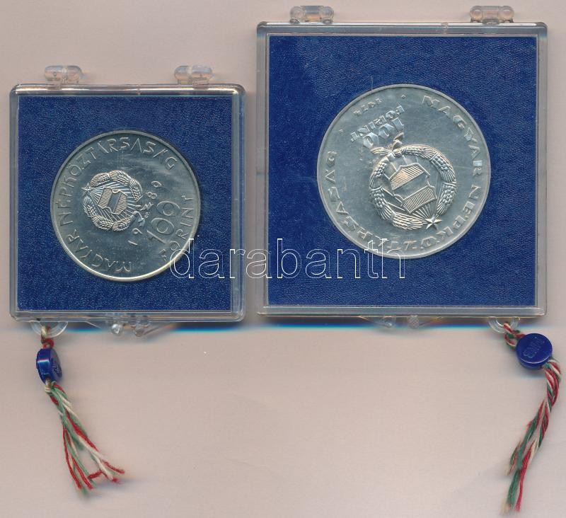 Beschreibung: 1974. 100Ft Ag "KGST" eredeti MNB plombált plasztiktokban + 1980. 100Ft Ni "Szovjet-magyar közös űrrepülés" eredeti MNB plombált plasztiktokban T:BU