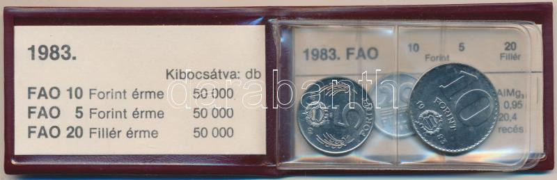 1983. 20f + 5Ft + 10Ft "FAO" eredeti tokban tanúsítvánnyal + 100Ft CuN... https://www.darabanth.com/de/227-Fernauktion/227.0/Numismatik/Ungarische-Munzen~600009/1983-20f-plus-5Ft-plus-10Ft-FAO-eredeti-tokban-tanusitvannyal-plus-100Ft-CuNi-FAO-eredeti-tokban-tanC3~II1007244